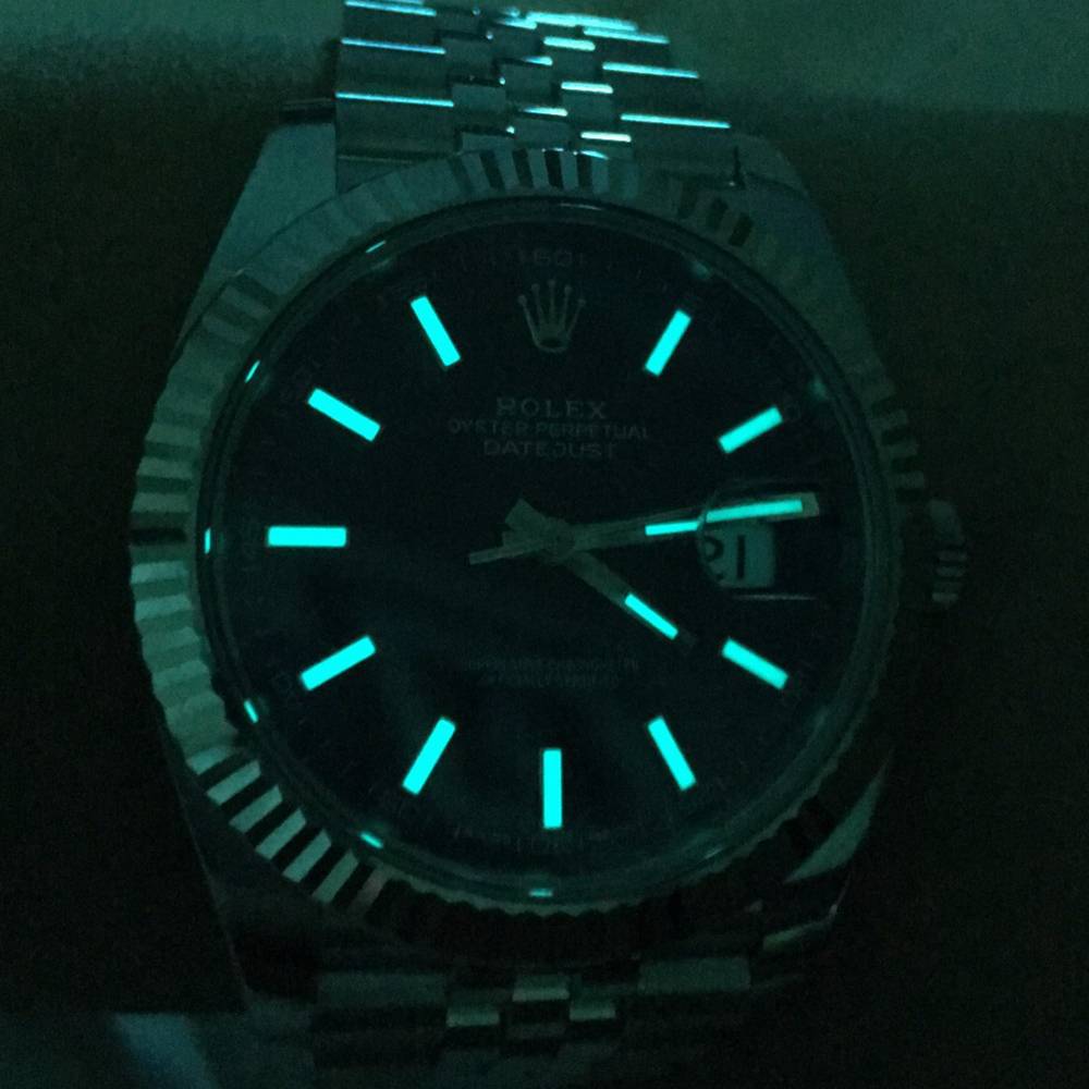 Rolex Datejust Swiss Replica watches are equipped with the new SuperLuminova? Blue glow luminescent pigment that after sufficient activation by sunlight or artificial light will glow in the dark up to nine hours with uniform luminosity throughout.