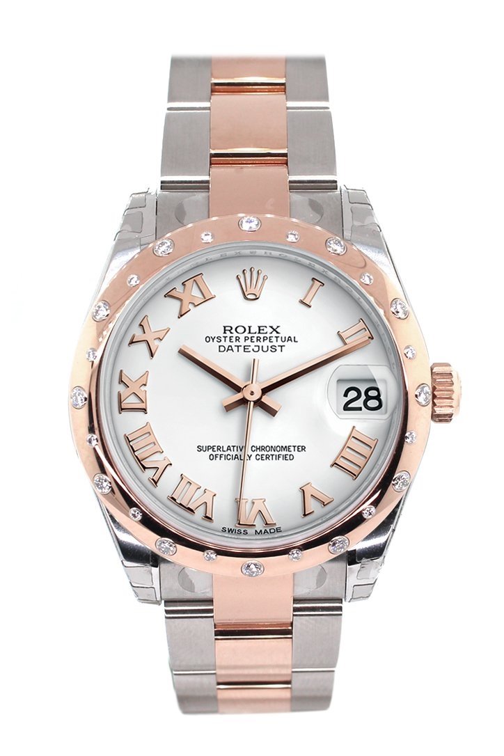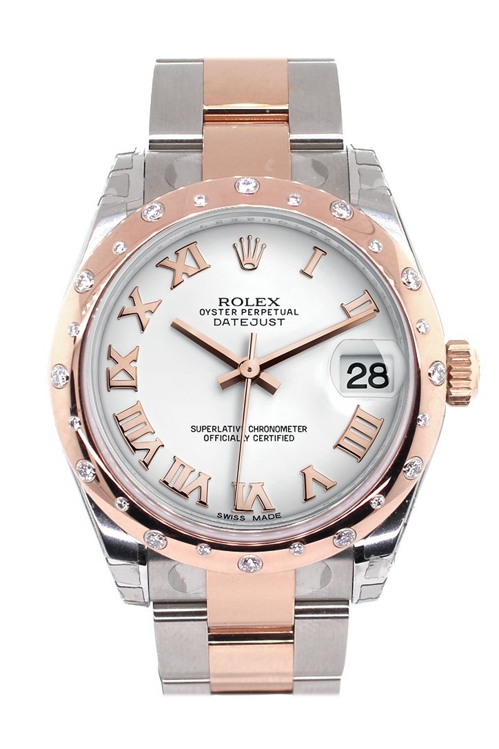 Datejust 31 White Roman Dial Diamond Bezel 18K Rose Gold Two Tone Ladies Watch 178341