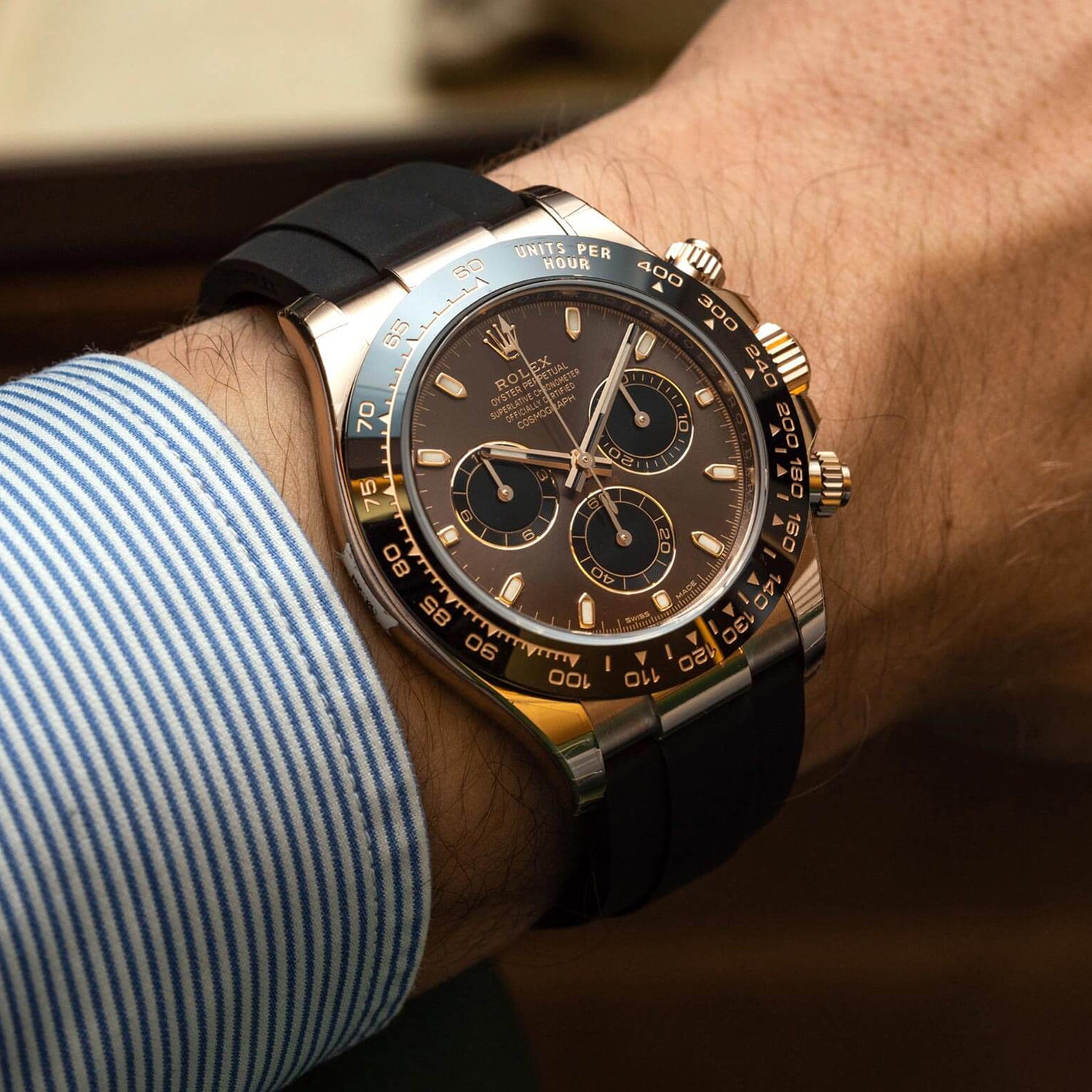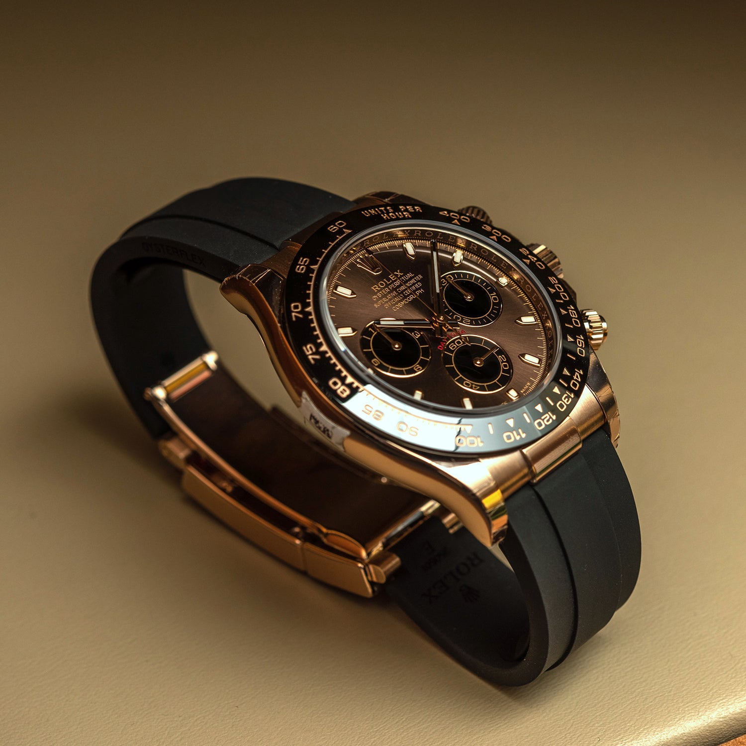 Rolex Daytona, Chocolate dial, Engraved Bezel, Rubber Oysterflex, Rose gold Watch 116515LN-0041