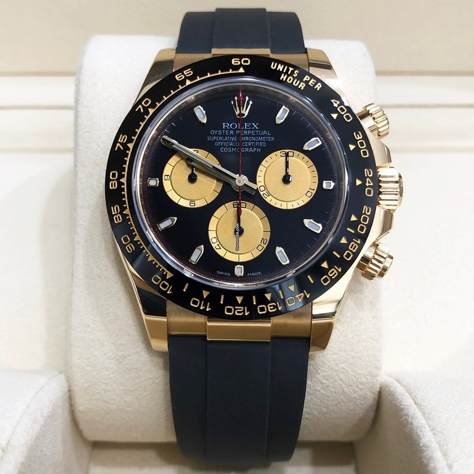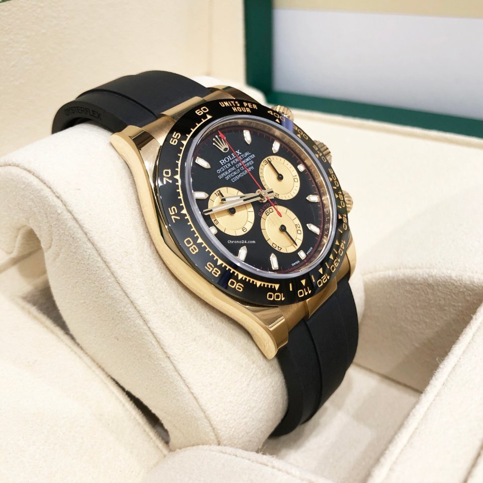 Rolex Cosmograph Daytona Black Champagne Yellow Gold Oysterflex Strap Mens Watch 116518LN 116518