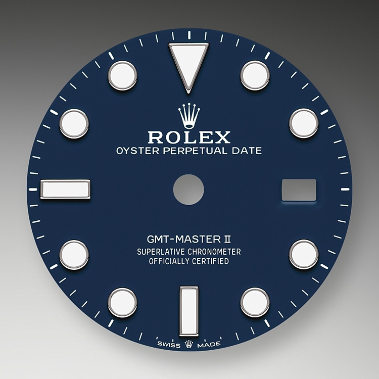 In addition to conventional hour, minute and seconds hands, the GMT-Master II features an arrow-tipped hand, which circles the dial once every 24 hours, as well as a bidirectional rotatable 24-hour graduated bezel.