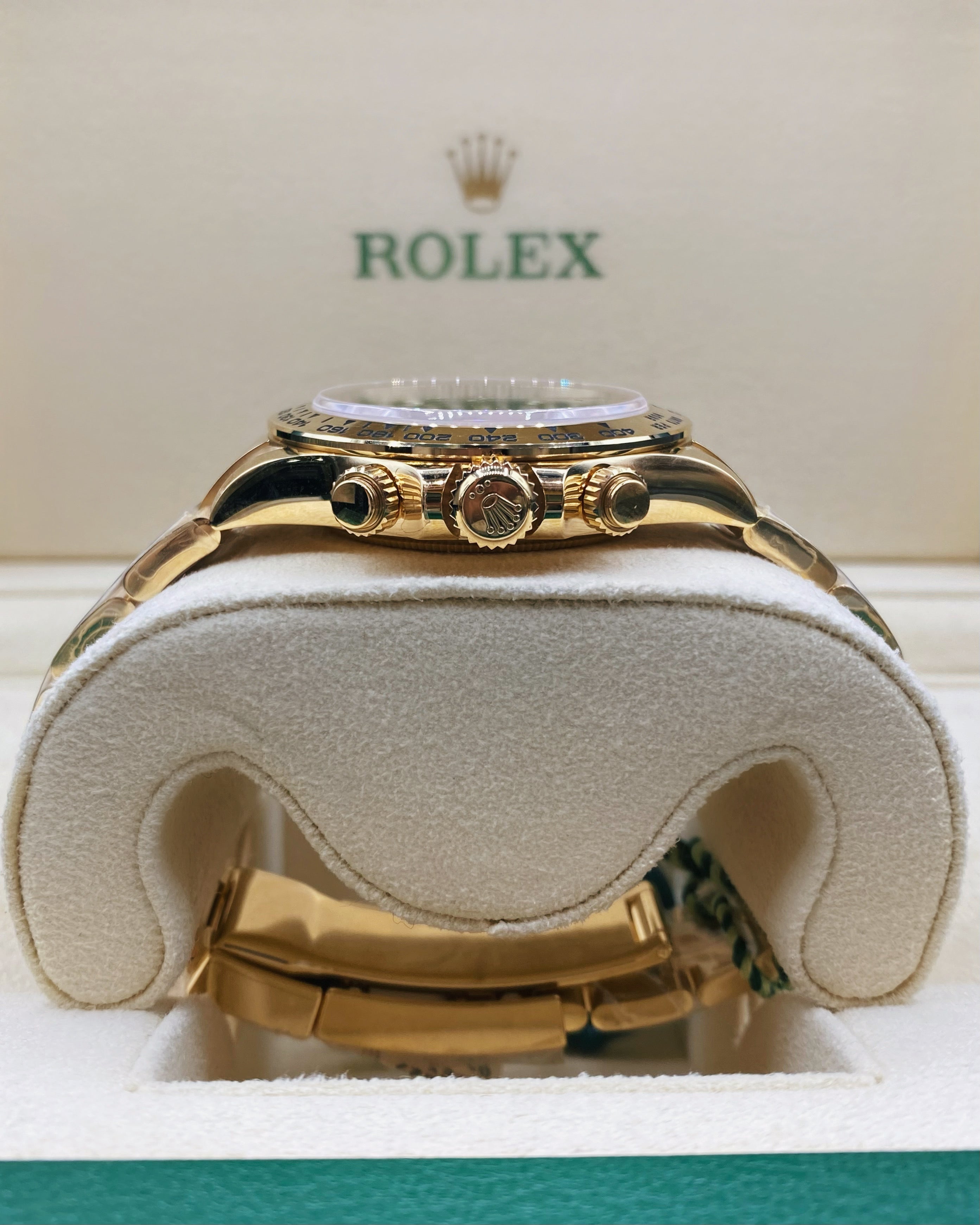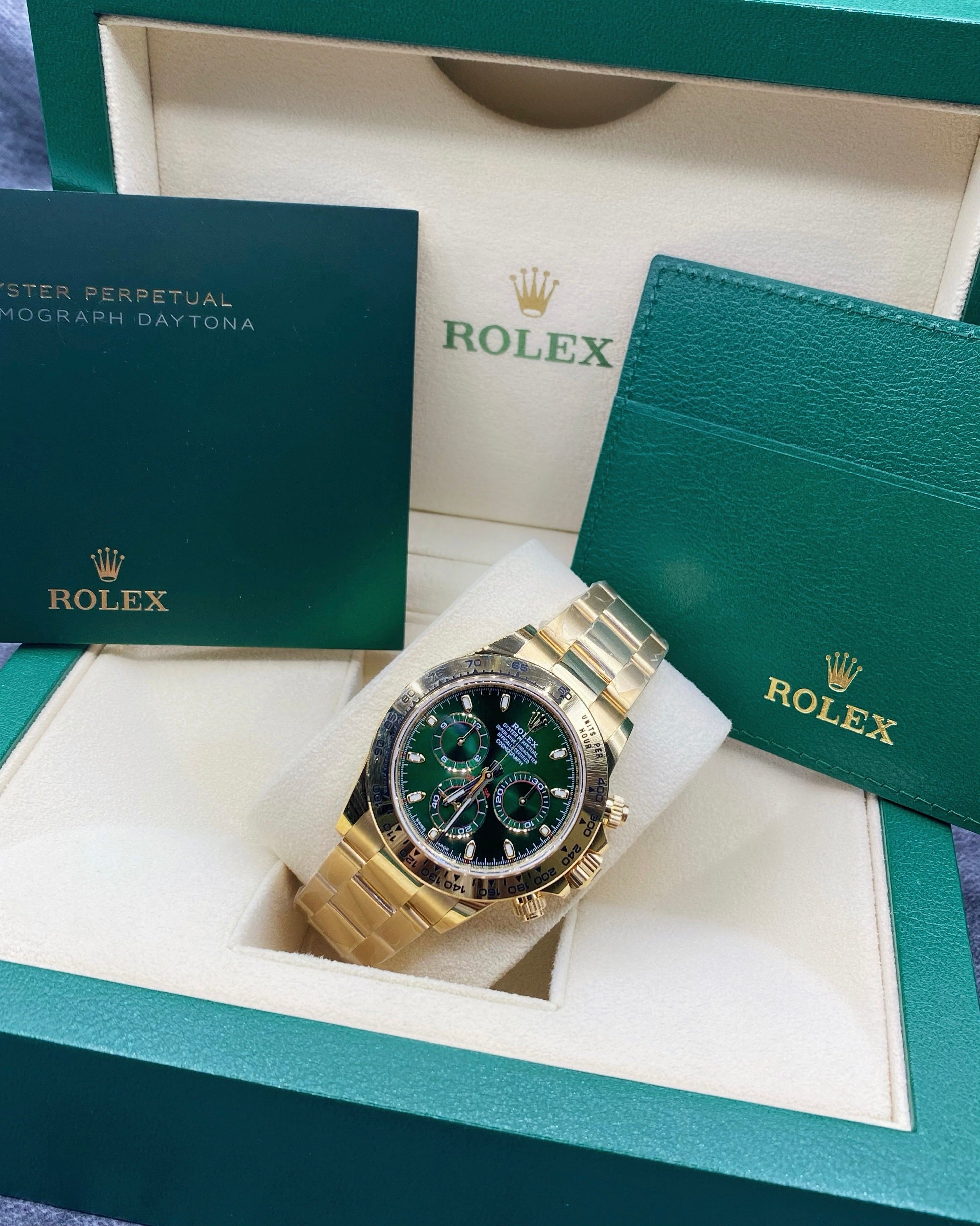 Rolex Cosmograph Daytona 18k Yellow Gold Watch Green Dial Oyster bracelet 116508