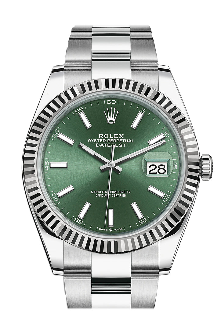 Rolex Datejust 41 Green Stick Dial White Gold Oyster Men's Watch 126334